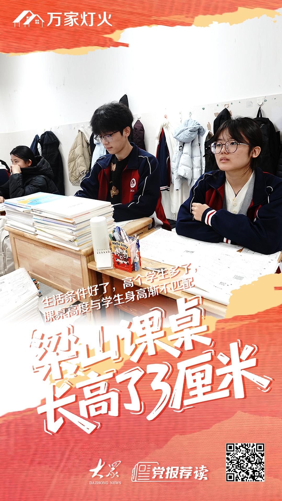 生活条件有所改善,高年级学生数量不断增加。渐渐地,课桌的高度将不再与学生的身高相匹配。梁山的桌子高度增加了3厘米。 “屈原名平,与朱同姓……”11月21日一大早,阳山市第一中学六、二班的教室里回荡着读书声。清晨的阳光将陈仁光的影子投射在墙上。他拿着一本课本,坐在书桌前,端正地坐着,大声朗读。就在三个月前,这个身高1.8米的男孩还在为“身高问题”而苦苦挣扎。 “他身高1.8米,靠在一张矮桌上,有点邋遢,驼着背,眼皮下垂。”这是他自己写的一首顺口溜,表达了高个子学生常见的问题,比如日程短,腿伸不直,背伸不直,课后普遍感觉萎靡不振。今年秋天新学期的第一天,他惊讶地发现自己的桌子高了三厘米。你的双腿会伸展,你的臀部和背部也会自然伸展。陈仁光和几个个子较高的同学终于可以把平时伸在走廊上的脚放回到课桌下。 “现在的孩子营养好,个子高的人越来越多,高中课桌的标准高度只有78厘米,很难容纳个子高的学生。”梁山县教育体育局党组成员、教育研究中心主任黄翔宇说。到2025年,凉山县身高1.8米以上的高中生将达到2376人,几乎占到六分之一。根据专家建议,身高大于180厘米应配备高度为81厘米的桌子。今年,梁山县打造了“改善中学课桌椅适性”惠民工程,为身高180厘米以上、有的近180厘米的高中生更换了2658套高度81厘米的“大”课桌。更换下来的课桌椅并没有被浪费,而是被用来补充和更新高中的课桌椅。高度相差3厘米以上。 “这贴心的三厘米,让孩子们舒展了脊背,让教育变得更有温度。”据学生父亲马德光介绍,儿子马文元高三时身高181厘米。今年,作为一名高中二年级学生,我注意到学校更换了站立式课桌。我的身姿突然变高了。语文老师兼校长张哲仔细观察。他注意到高个子的学生总是扭动身体书写时,他们的身体会受到影响,导致字母弯曲并向上漂浮。现在我的姿势更挺了,字迹更清晰了,考试成绩也提高了。 (大众新闻记者王浩琪实习生赵冠宇通讯员马福军)